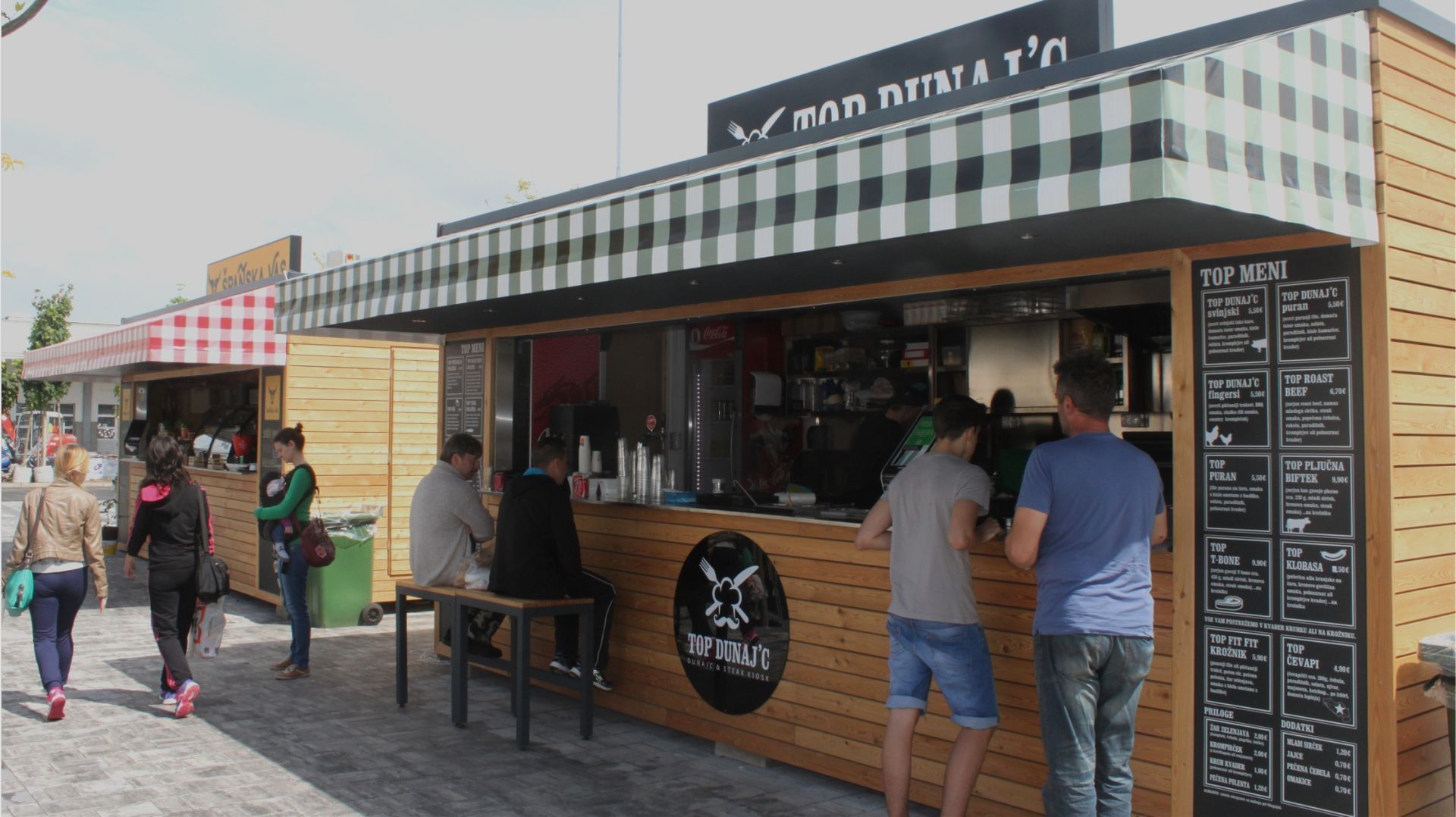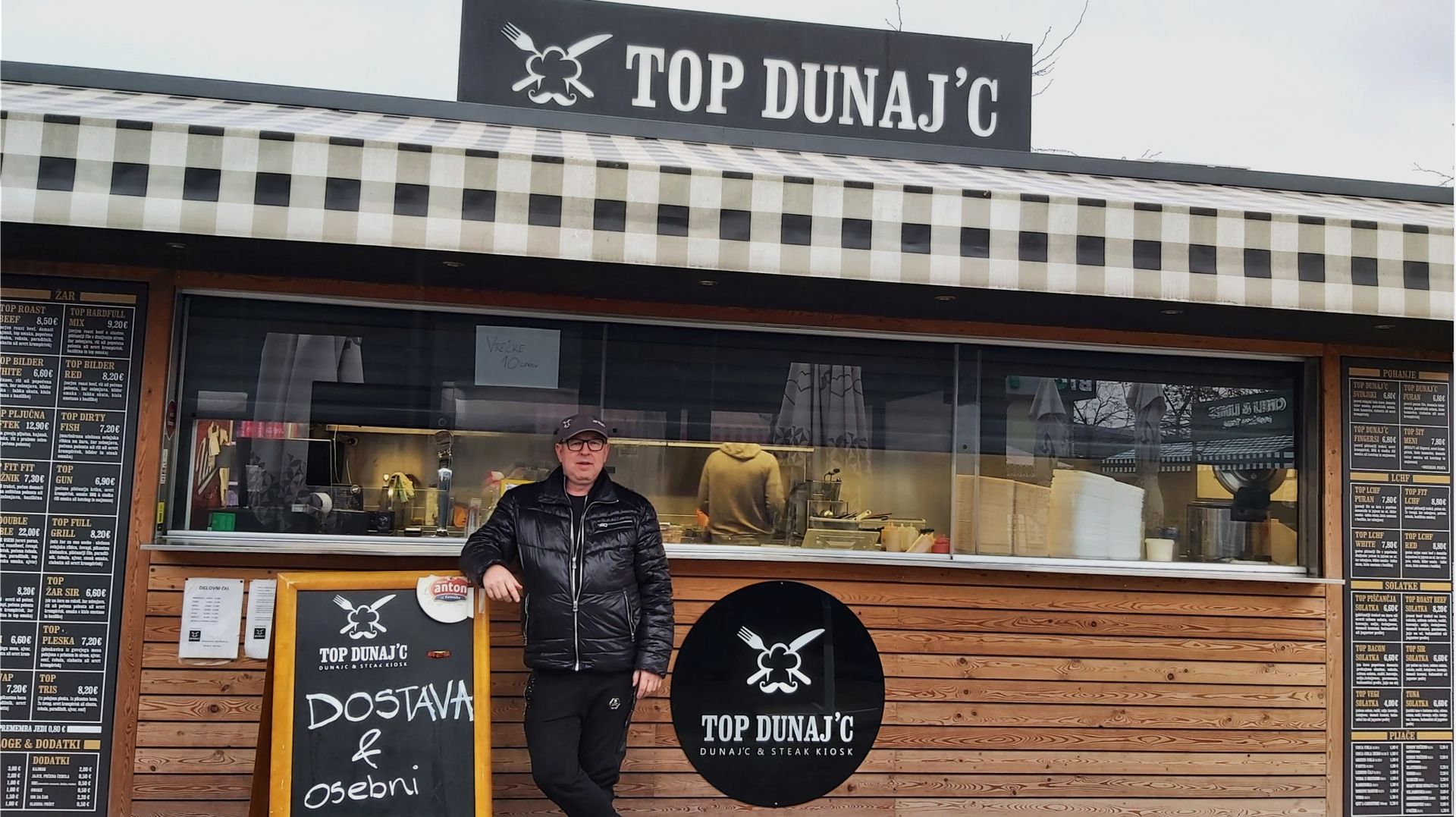 Top Dunaj’c kiosk se nahaja v ljubljanskem BTC-ju, na street food tržnici. Top ekipa vam vsak dan pripravlja kopico slastnih dobrot za vsa okuse. Na našem bogatem meniju najdete vse od mesnih dobrot – slastnega dunaj’ca, roast beefa, perutničk, čevapčičev do solatk. Prostor je poleg šestih ponudnikov hrane opremljen tudi s pokritim in ogrevanim jedilnim prostorom. Tako se lahko gurmanskim užitkom prepustite ob vsakem vremenu.